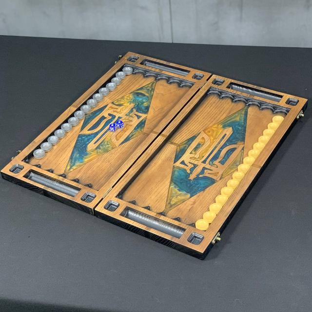 Нарди з дерева ясен з різьбленням та епоксидною смолою – стильна настільна гра та розкішний подарунок